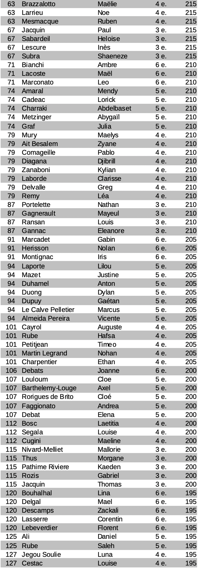 | 6ème | 5ème | 4ème | 3ème |