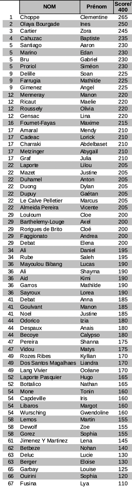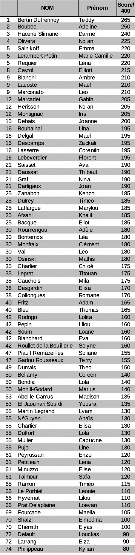 CLASSEMENT GÉNÉRAL
